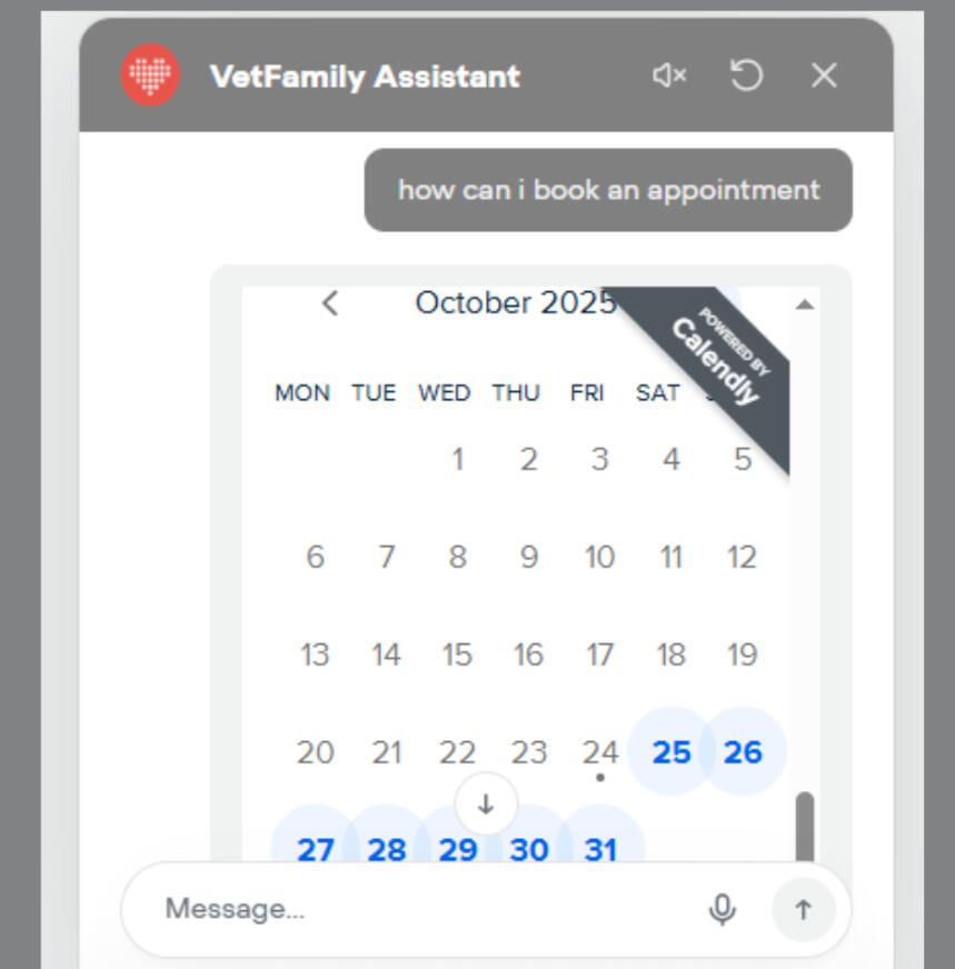 Shows how visitors can book consultations directly through the scheduler, with available time slots automatically managed to prevent conflicts.