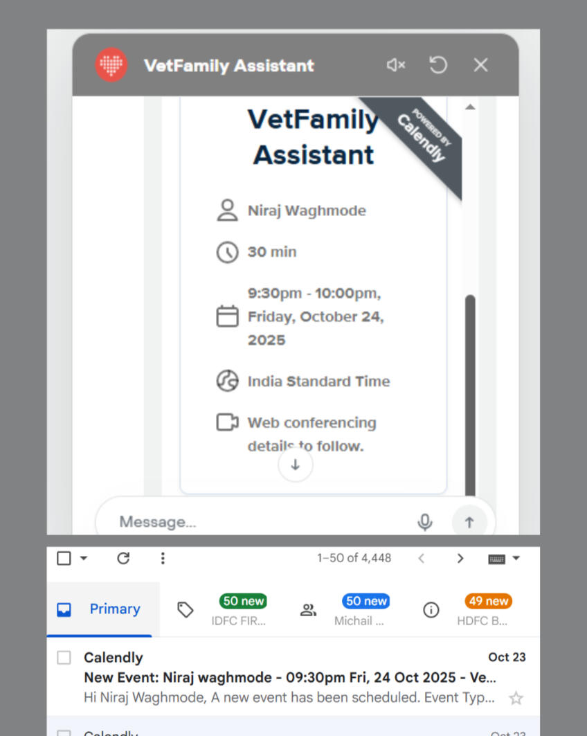 Shows how the system sends instant Gmail reminders when a new appointment is booked ensuring clients never miss their scheduled sessions.